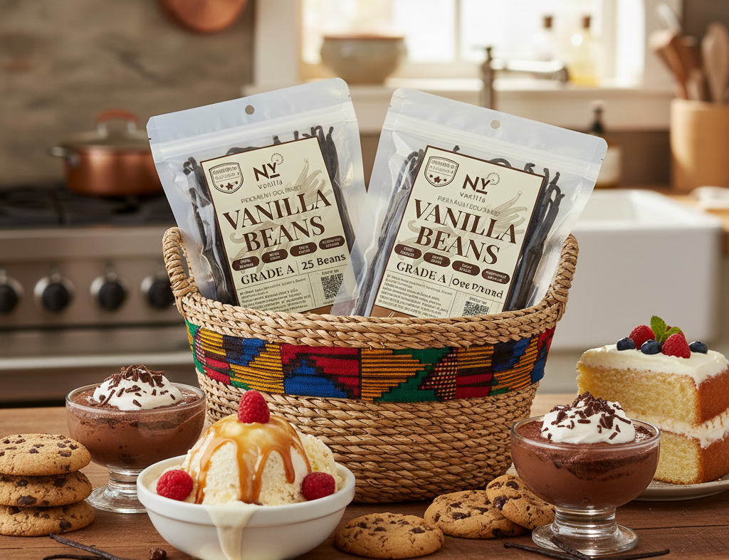 At NY Vanilla, we’re all about bringing you the best Grade A Ugandan vanilla beans—fresh, flavorful, and perfect for everything from home baking to professional cooking. We source only top-quality, vanilla pods that meet our high standards. Plus, as a proud Minority Women-Owned Business, we’re passionate about great vanilla beans and supporting our community..